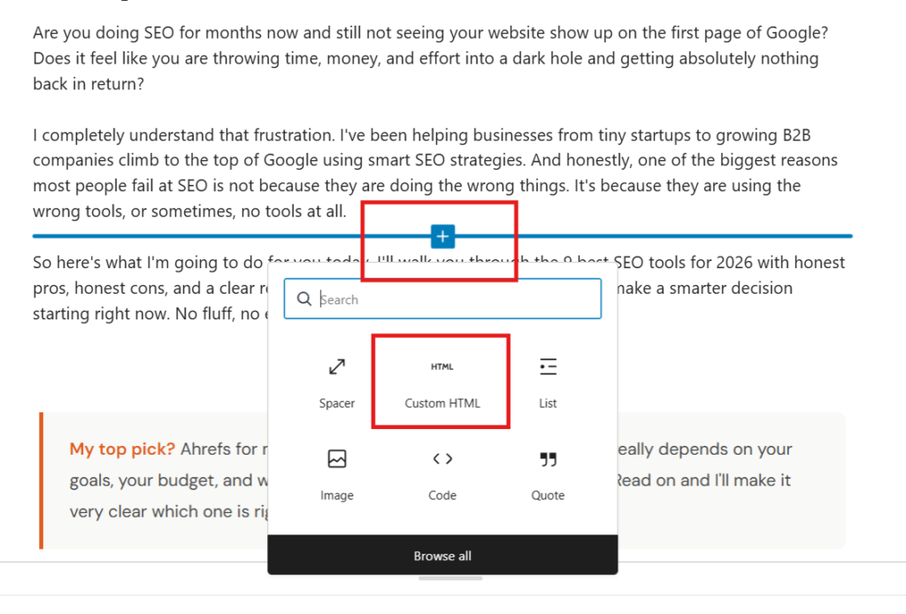 Method 1: Add It Manually With HTML