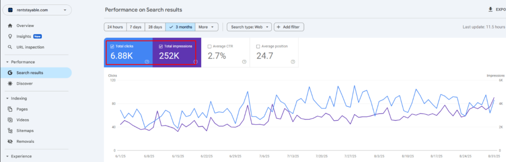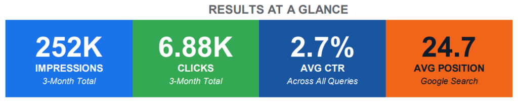 The data speaks for itself. Here’s what Google Search Console recorded over 3 months of focused SEO work: