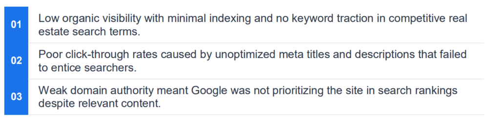 When rentstayable.com approached us, the site was virtually invisible on Google. Despite having solid content and a clear value proposition, it faced three core problems: